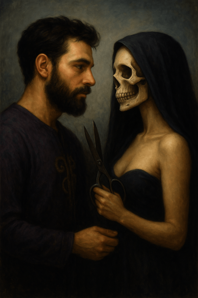 Приятелите го наричат „флиртаджия“, но в страданието си той започва да флиртува и със самата Смърт. Накрая ѝ се отдава.